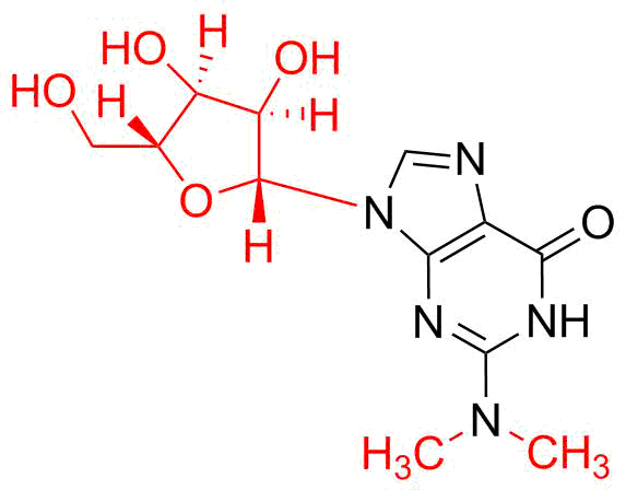A guanosine where the hydrogens of the amine group at C-2 are substituted by methyl groups.